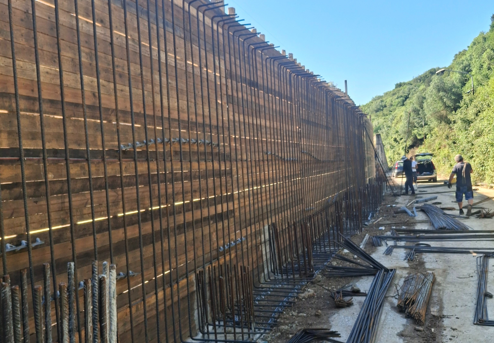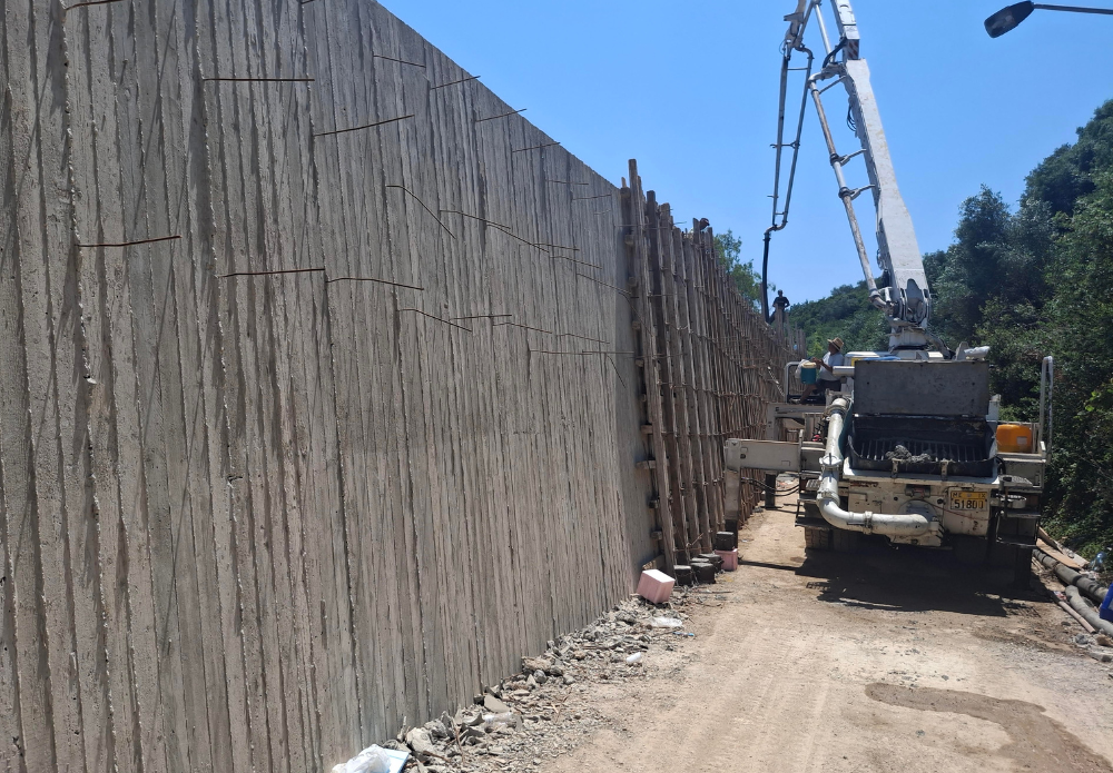 The project included the construction of a row of 27 bored piles, with a total length of approximately 200 meters, on which a reinforced concrete retaining wall was founded via a pile cap. The wall measured 1.00 m in width at the base and 0.40 m at the top, with a total length of 64 meters.